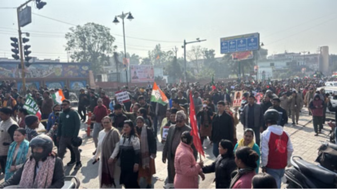 इसलिए मांगों को लेकर परेड ग्राउंड से विशाल रैली निकाली जा रही है। वहीं शहर में पुलिस बल भी तैनात है।