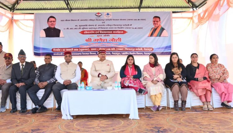 मसूरी विधानसभा क्षेत्र के विलासपुर काड़ली क्षेत्र में ₹298.06 लाख की लागत से विभिन्न विकास कार्यों का शिलान्यास एवं लोकार्पण करते कैबिनेट मंत्री गणेश जोशी