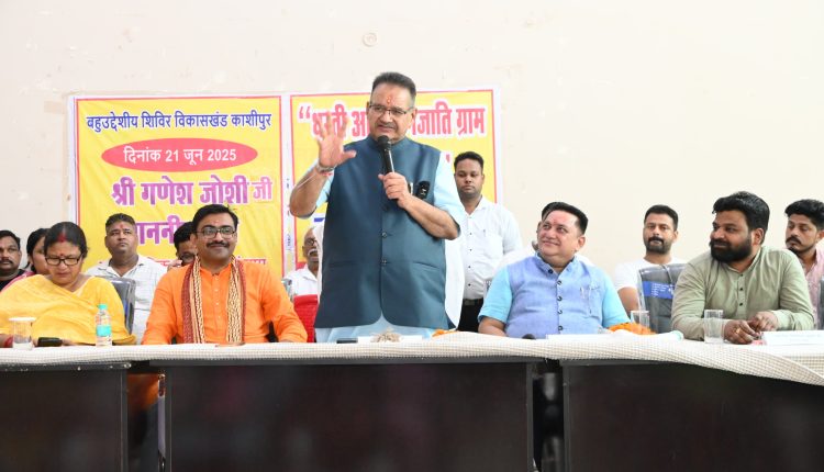 अपने सम्बोधन में सरकार की उपलब्धि रेखांकित करते हुए कृषि मंत्री गणेश जोशी ने कहा कि सरकार का कमजोर वर्ग के लोगों को सरकारी योजनाओं से संतृप्त करने पर विशेष फोकस है। उन्होंने कहा कि हमारी सरकार जनता की सरकार, जनता के द्वार नारे को आत्मसात करते हुए कार्य कर रही है। हमने ग्रामीण क्षेत्रों को सशक्त करने का संकल्प लिया है। काबीना मंत्री ने कहा कि पिछले 3 वर्षो में 23 हजार से अधिक युवाओं को स्थायी रोजगार देने का काम धामी सरकार ने किया है। उन्होंने कहा कि धामी सरकार का संकल्प है कि जिन योजनाओं का शिलान्यास करेंगे, उनका लोकार्पण भी हमारे द्वारा ही किया जाऐगा।