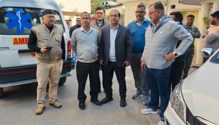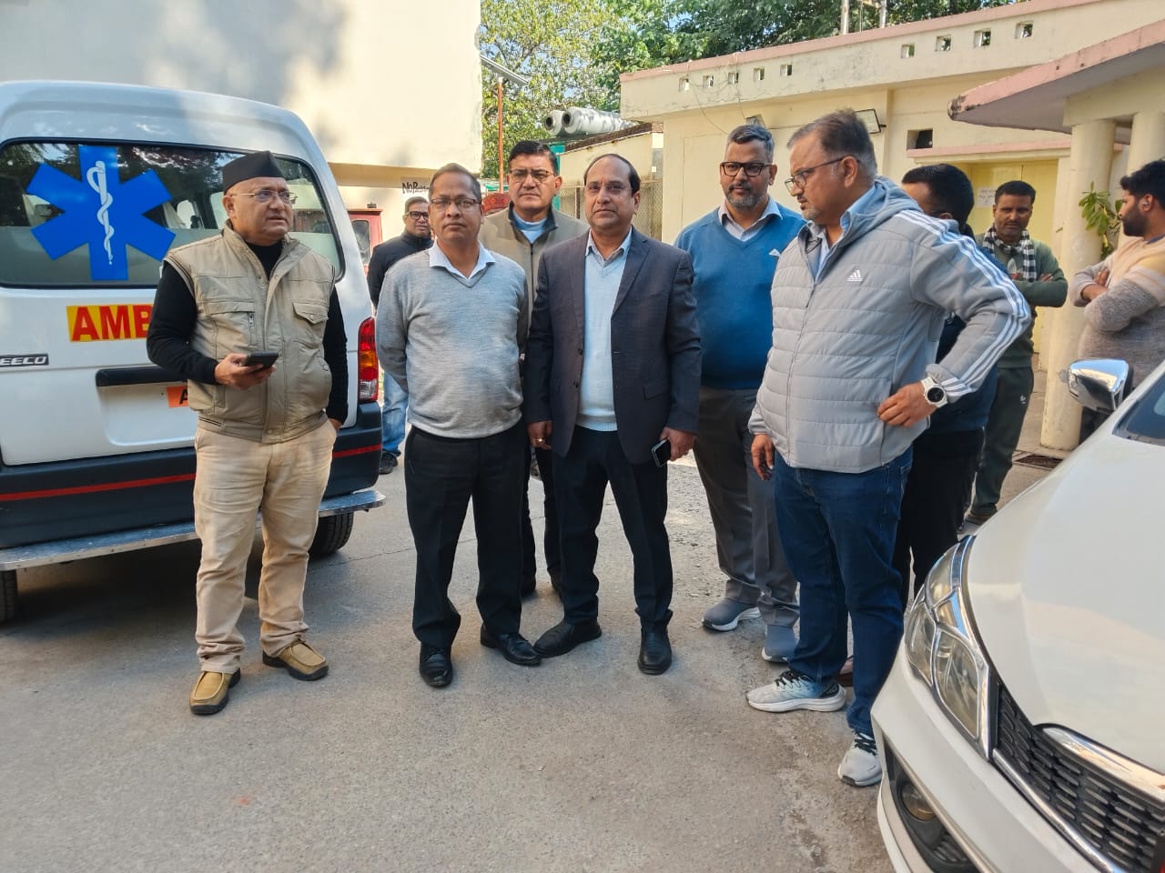 मंगलवार को मुख्य चिकित्सा अधिकारी डॉ. मनोज कुमार शर्मा द्वारा जिला कोरोनेशन चिकित्सालय स्थित पोस्टमार्टम हाउस का औचक निरीक्षण किया गया। निरीक्षण के दौरान प्रमुख चिकित्सा अधीक्षक डॉ. मनु जैन, एस डी एम सदर श्री हरि गिरी, अपर मुख्य चिकित्सा अधिकारी डॉ. विमलेश जोशी एवं नोडल अधिकारी डॉ प्रवीण पंवार उपस्थित रहे। मुख्य चिकित्सा अधिकारी द्वारा पोस्टमार्टम हाउस में व्यवस्थाओं का जायजा लिया गया तथा निर्देशित किया गया कि वहां पर विद्युत, फ्रीजर एवं साफ सफाई की व्यवस्था दुरुस्त रखें। शवों के रख रखाव की उचित व्यवस्था रखें। पोस्टमार्टम हाउस में आवश्यक उपकरणों की आपूर्ति डिमांड के आधार पर पूर्व में ही की जा चुकी है।