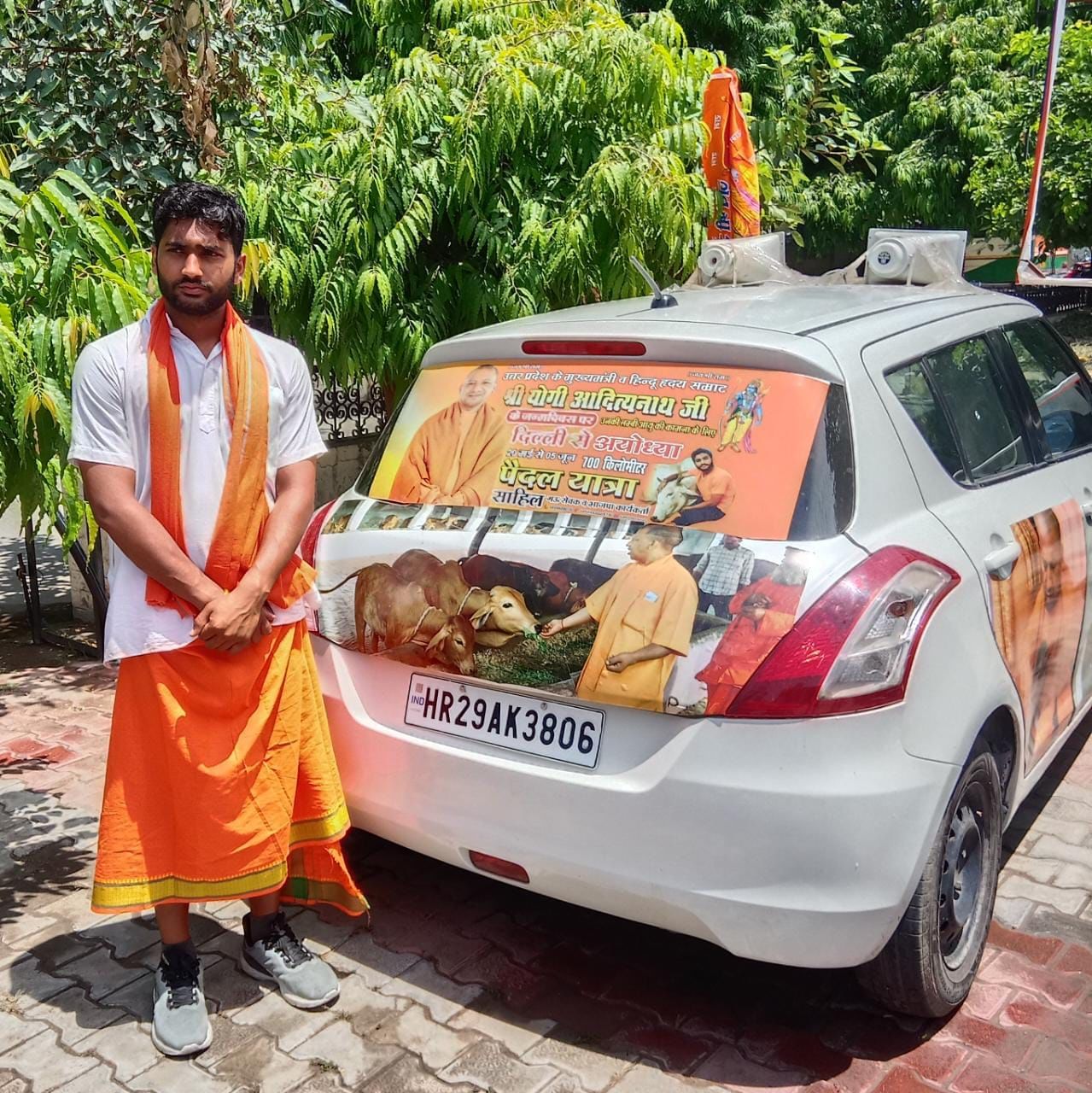 मुख्यमंत्री योगी के इस जबरा फैन का नाम है साहिल…। दिल्ली के नजफगढ़ में रहने वाले साहिल भाजपा युवा मोर्चा के जिला उपाध्यक्ष हैं। साहिल मुख्यमंत्री योगी की तस्वीर लेकर दिल्ली से पैदल यात्री पर निकले हैं। उन्होंने 20 मई को पैदल यात्रा शुरू की थी। करीब 250 किमी की पैदल यात्रा कर साहिल शुक्रवार को बदायूं पहुंचे।