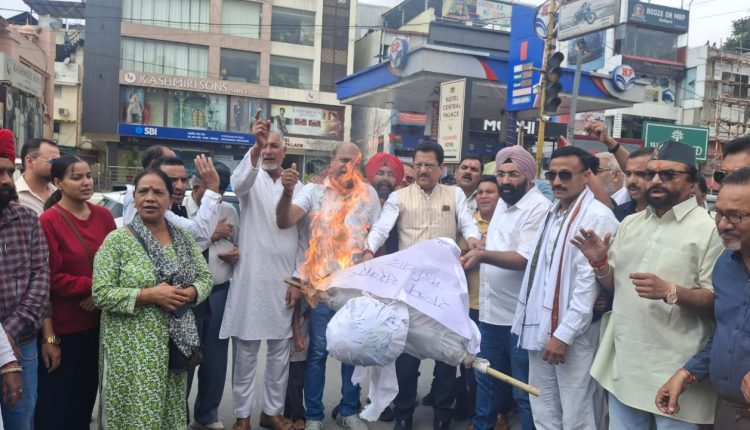 जॉर्ज एवरेस्ट पार्क आवंटन घोटाले के खिलाफ कांग्रेस ने प्रदेश भर में प्रदर्शन कर राज्य सरकार का फूंका पुतला