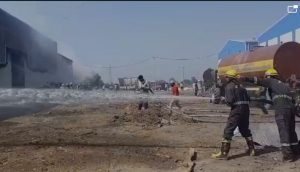 दरअसल आपको बता दें कि यह घटना जनपद शामली की सदर कोतवाली क्षेत्र के कंडेला इंडस्ट्रियल एरिया की है… यहां पर शामली निवासी व्यापारी अनुज गर्ग की अमर इसप्लेंट प्राइवेट लिमिटेड नाम से एक बड़ी चम्मच में गिलास फैक्ट्री है… अनुज का अधिकतम माल विदेशों में एक्सपोर्ट होता है…आज सुबह करीब 7:30 बजे अचानक फैक्ट्री में संदिग्ध परिस्थितियों में आग लग गई…आग इतनी तेजी से फैली कि उसने चांद ही बालों में फैक्ट्री में रखे माल को अपने आगोश में ले लिया और समस्त सामान जलकर खाक हो गया… आग लगने की सूचना पर मौके पर पहुंची फायर ब्रिगेड की आधा दर्जन गाड़ियों में बमुश्किल आग पर काबू पाया… लेकिन जब तक आग बुझ पाती तब तक व्यापारी को तीन करोड़ रूपए का नुकसान हो चुका था… पीड़ित व्यापारी अनुज गर्ग ने बताया कि मौसम खराब होने के कारण माल ज्यादा नहीं बनाया था, वरना नुकसान और ज्यादा होता… वही आग लगने की सूचना पर पूर्व कैबिनेट मंत्री सुरेश राणा भी मौके पर पहुंचे और उसने पीड़ित व्यापारी का ढांढस बधाया।