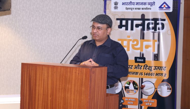 ब्यूरो ऑफ इंडियन स्टैंडर्ड्स (बीआईएस), देहरादून शाखा कार्यालय द्वारा “मानक मंथन” नामक एक हितधारक परामर्श कार्यक्रम का आयोजन दिनांक 06 अगस्त 2025 को होटल रेजन्टा, देहरादून में किया गया। यह कार्यक्रम ड्राफ्ट संशोधित भारतीय मानक IS 14661 (भाग 2) “टिशू पेपर एवं टिशू उत्पादों” पर आधारित था।