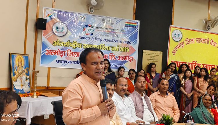 अंतरराष्ट्रीय सहकारिता वर्ष 2025 के उपलक्ष्य में आज विकासभवन सभागार में “सहकारिता से महिला सशक्तिकरण” विषय पर एक गोष्ठी का आयोजन किया गया। इस गोष्ठी का आयोजन अल्मोड़ा सहकारी बैंक तथा सहकारिता विभाग अल्मोड़ा द्वारा किया गया। गोष्ठी में सहकारिता मंत्री उत्तराखंड डॉ धन सिंह रावत ने बतौर मुख्य अतिथि प्रतिभाग किया। कार्यक्रम में बेहतर कार्य करने वाले स्वयं सहायता समूहों एवं महिलाओं को कैबिनेट मंत्री डॉ धन सिंह रावत द्वारा सम्मानित किया गया तथा महिलाओं एवं स्वयं सहायता समूहों को ब्याज रहित 0% पर 65.00 लाख के चेक भी वितरित किए । यह धनराशि महिलाओं को रोजगार प्रेरक कार्य करने हेतु प्रदान की गई है।