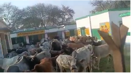 किसानों के खेतों में इस समय गेहूं की फसल कटने को तैयार खड़ी है। लेकिन किसानों को डर है कि सैकड़ों की संख्या में खेतों में घूम रहे छुट्टा पशु कहीं उनके गेहूं को हजम ना कर जाएं। खेतों में बेलगाम घूम रहे सांड और गायों से अपने गेहूं को बचाने के लिए जलालाबाद के रघुनाथपुर गांव के किसानों ने गांव के सभी छुट्टा पशुओं को एक जगह इकट्ठा कर बच्चों के प्राथमिक स्कूल के अंदर बंद कर दिया और बाहर से गेट पर ताला जड़ दिया।